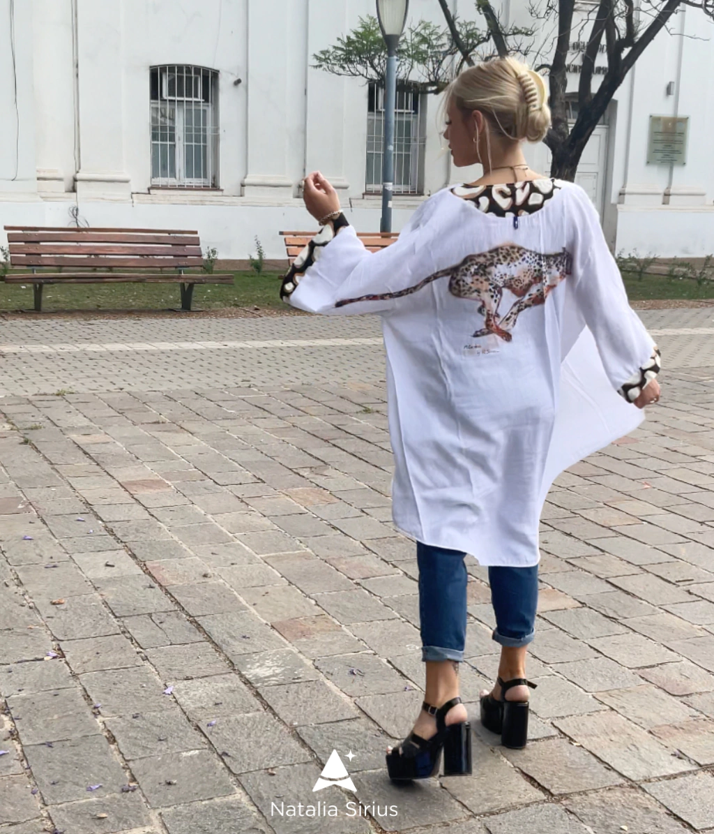 kimonos en lino de seda blanco pintados a mano por artista plástico, únicos e irrepetibles.